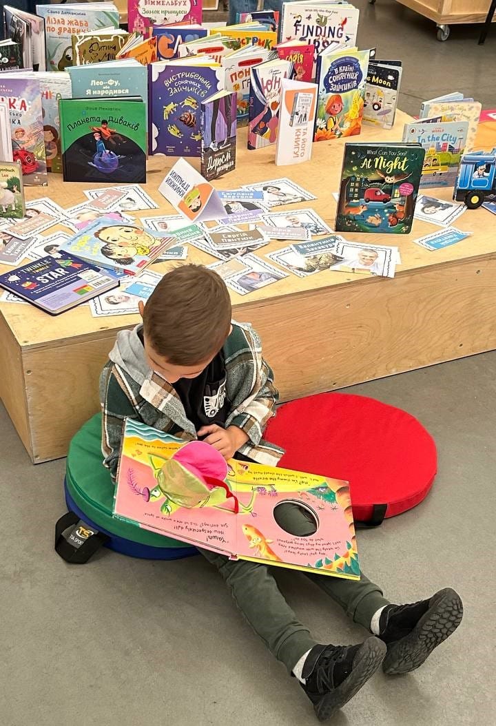 Ну звісно, не обійшлося без казкотерапії – читання книжок та бібліотерапевтичних порад. Початок другого дня фестивалю «Арсенал ідей. Різні разом» на бібліотечному стенді був насичений емоціями та новими відкриттями: дружньо змагалися у настільних іграх, розфарбовували мальопис «Між нами небо», знайомилися з бібліотечними електронними ресурсами, гралися з терапевтичним песиком Хібукі, який дарував усім тепло і радість. І, звісно ж, читали книжки, бо з ними кожен день перетворюється на пригоду. Відвідувачі бібліотечного стенду мали змогу поринути у мистецькі розваги: відкривали казковий світ мисткині Ольги Рапай та український шрифт Рутенія, розглядали унікальні художні альбоми з дивосвітом Марії Примаченко, дитячі книжки- іграшки, віммельбухи, книжки з віконечками; дивувалися дитячим малюнкам в альбомах кращих робіт численних всеукраїнських творчих конкурсів, організатором яких є НБУ для дітей.