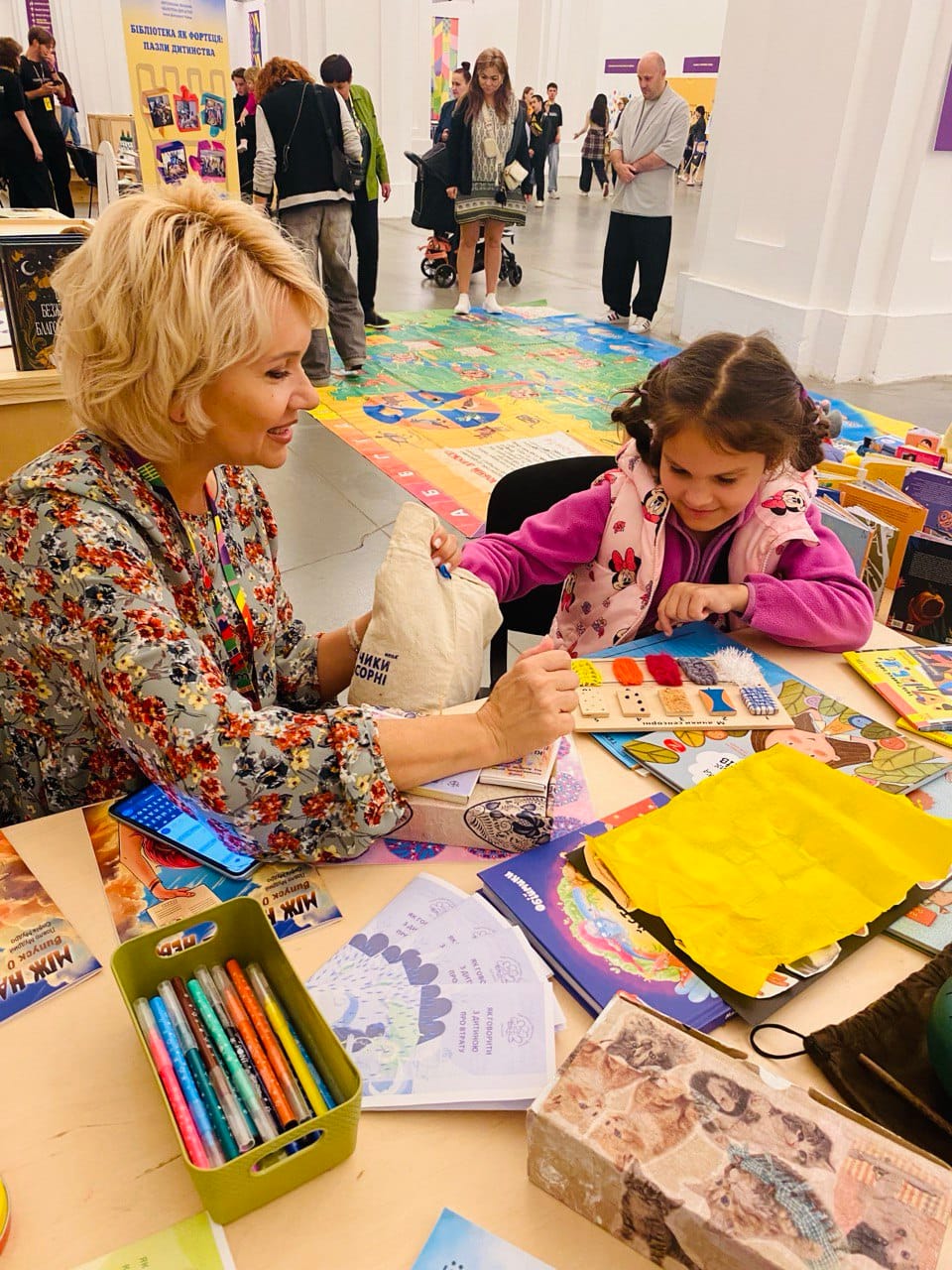 Психологи бібліотеки запропонували різноманіття занять для маленьких і великих: метафоричні карти для матусь, тактильні книжки та іграшки для малечі. Дітям особливо сподобалося грати на незвичайних музичних інструментах – глюкофоні та калімбі; а метод зцілення м’якою іграшкою також припав до душі і дорослим. До речі, деякі відвідувачі отримали вподобане іграшкове звірятко у подарунок.