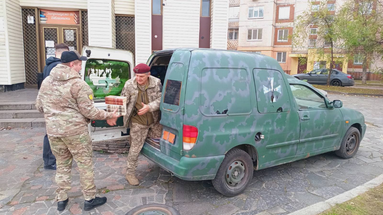 Близько ста примірників творів українських авторів, зібраних користувачами та друзями бібліотеки, було передано партнеру Етнобібліотеки – офіцеру Збройних Сил України, громадському діячу, очільнику ГС «Спілка ветеранів» Олександру Ушинському – для подальшого вручення нашим захисникам.