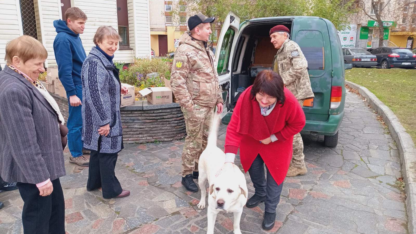 Військові швидко завантажили духовний скарб у авто, а чотирилапий друг – пес лабрадор, який прибув разом із господарем, став справжнім улюбленцем зустрічі, створивши всім присутнім позитивний настрій.
