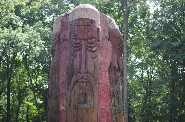 Вхід на капище Перуна. Вгорі на колоді язичницька символіка.
