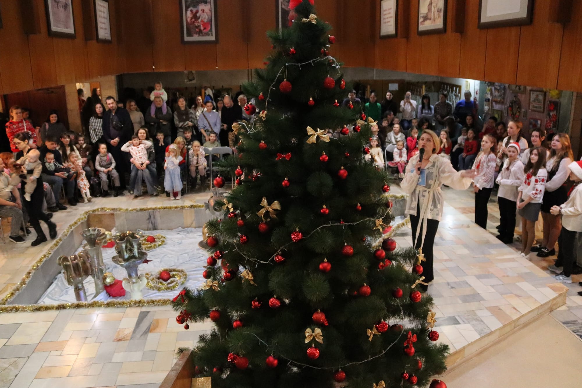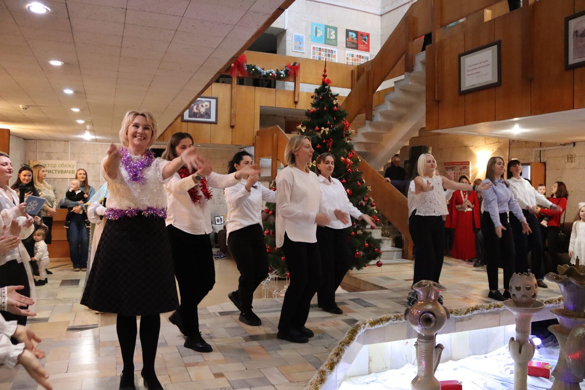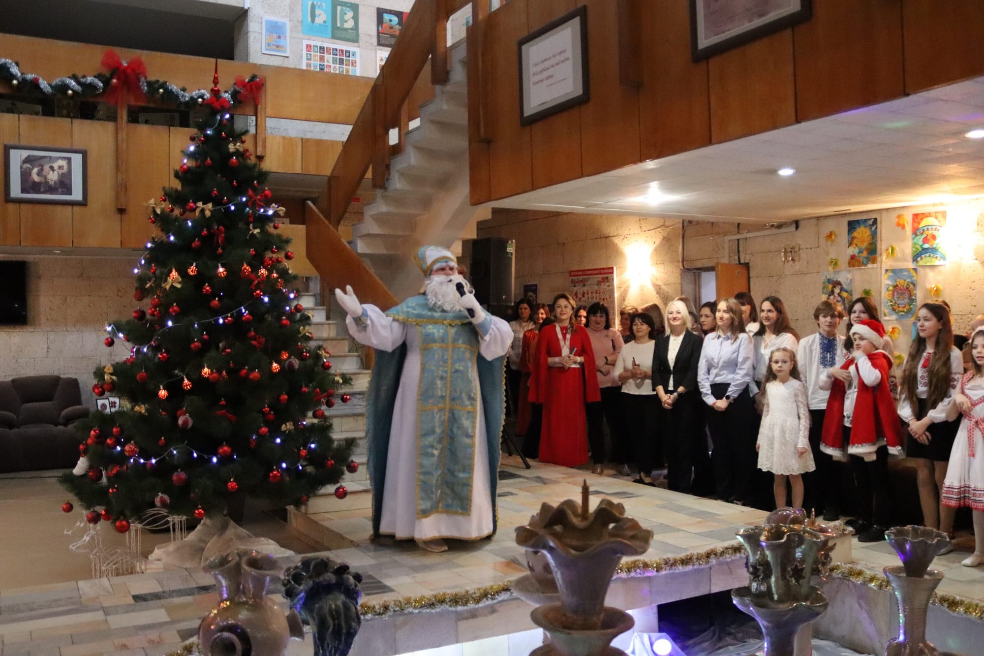 Генеральний директор бібліотеки Алла Гордієнко урочисто відкрила свято та привітала з Днем Збройних Сил України, адже саме завдяки нашим військовим ми можемо збиратися ось таким великим дружнім товариством, аби відсвяткувати день Святого Миколая.