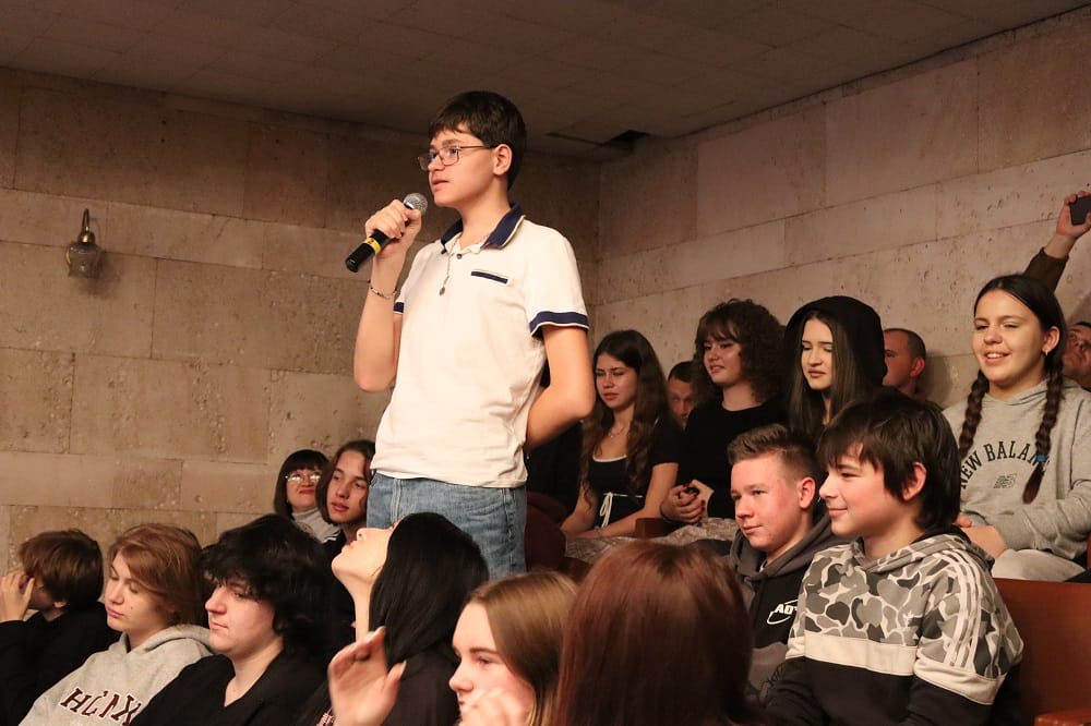 І з власного вірша Артем розпочав своє спілкування з підлітками: «Хто привів бездушне військо в Україну. Хто і як?..», відповідь його проста: «Я – говорячи російською, я – читаючи російською, я – співаючи російською». Артист розповів про свій шлях у музиці, про те, як після початку повномасштабної війни свідомо повністю перейшов на українську мову у своїй творчості.