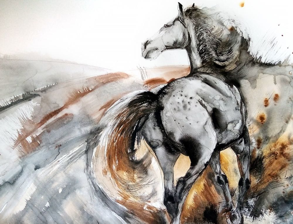 Сьогодні, як ніколи, під час війни ми цінуємо кожну мить свого життя. Всі компоненти, що нас оточують, набули особливого значення. Як складно нам не було б, але є що згадати з мирного буття. Перед нами ціла епопея із запальними перегонами на іподромі. Експресія зворушливої напруги розкривається в темпераментних розчерках, які вдало підкреслюють миттєву ситуацію. Поряд полярний настрій. Мисткиня з неймовірним душевним теплом передає звичайні будні біля своїх улюбленців, які вміють додати життю комфорту й чуйності. Також Марина Андріївна вдало передає романтичний настрій у мотивах з квітами. Улюблені троянди завдяки вишуканій прозорій палітрі викликають поетичний стан, який спонукає до спостереження навколишньої краси.